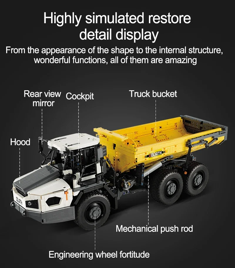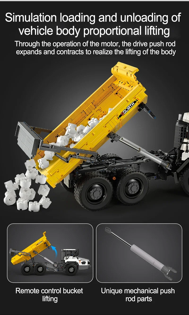 Modello: C61054 Marca: CaDA Pezzi: 3067pcs Dettagli: Camion articolato da cava Technic motorizzato con cassone ribaltabile e sterzo articolato
