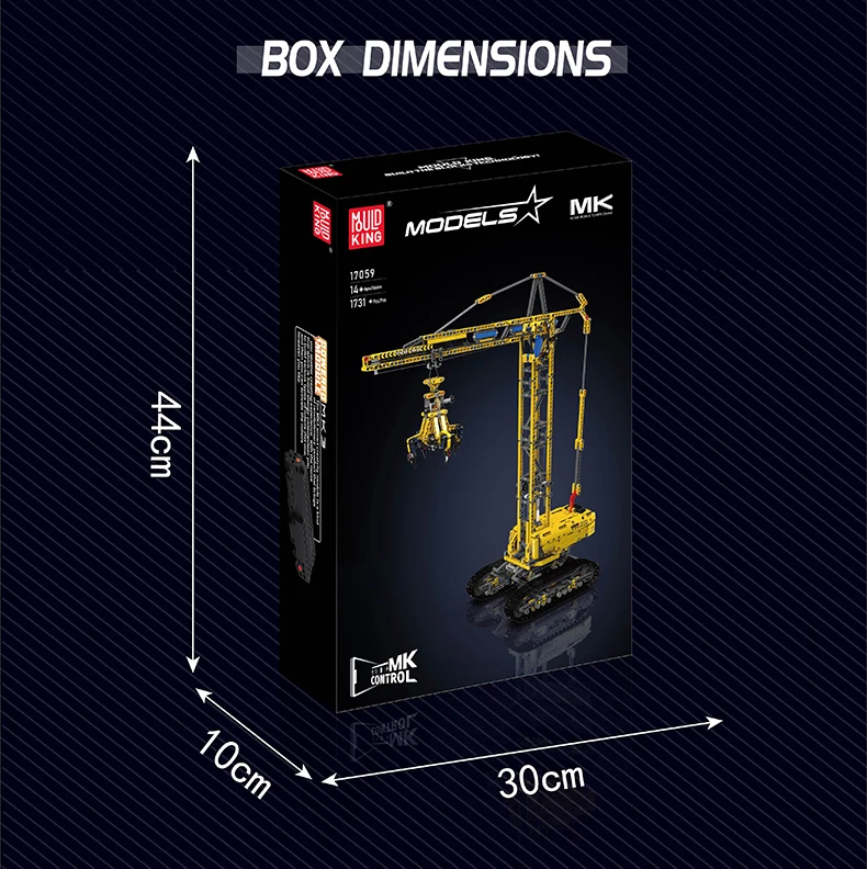 Modello: 17059Marca: Mould KingPezzi: 1731pcsDettagli: Gru Technic con motore, controllo APP e telecomando, scatola originale inclusa